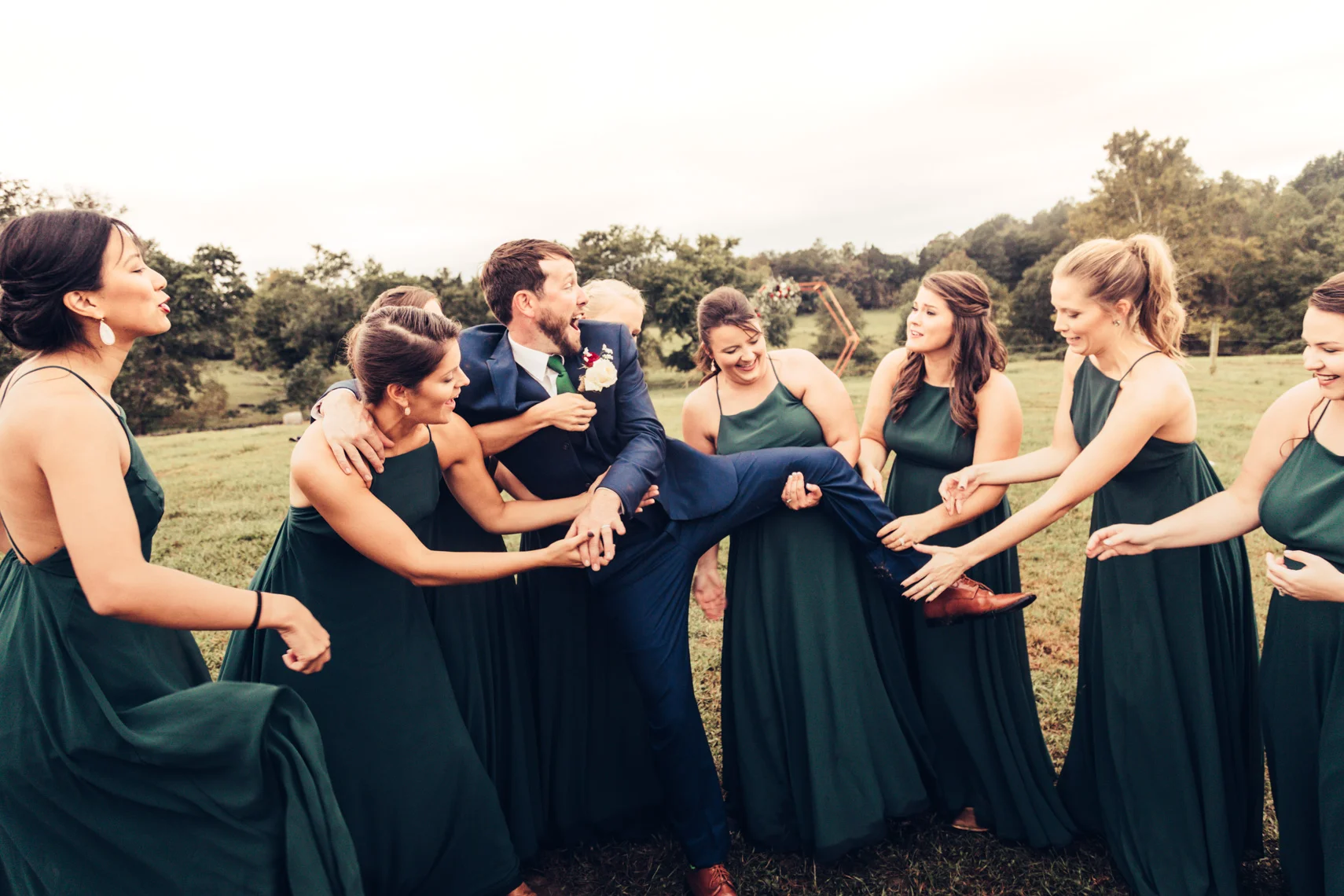 How freaking cute are these two?! Sweet as American Pie, these lovebirds have been in love for a long time and finally tied the knot on September 22, 2018 at his farm home in Central Virginia complete with his cows mooing with approval as they said their vows in the rain. Rain is considered good luck on your wedding day and is taken as a sign of cleansing and renewal. Id say we were all cleansed that day and good thing because this crew knows how to party! We loved spending the day with these two and their amazing friends and family as they promised their lives to one another. They truly are the greatest love story this town has ever seen!