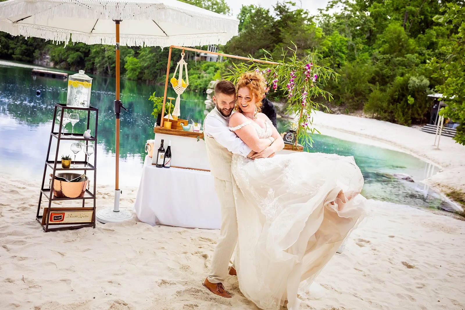 We were asked to shoot some wedding inspiration for this new unique quarry wedding venue in Harpers Ferry and we are so excited to share this amazing place with you! This venue is also an airbnb, you can stay right on the property with a few of your guests. They have a meeting room, lots of decks with views of the quarry, a large white sand beach, shaded area across from the beach with plenty of tables for your guests, indoor reception hall and a tent pad in case you want to have a larger reception. They have a gym, a toy shack with all the water toys you would want, a water trampoline, several floating docks, fishing equipment, a pontoon boat, a rowboat, a fishing boat, hammocks and swings to hang out on all around the property, two fire pits and still more to come. It’s such an amazing place to be and to have a dream wedding that’s SO unique.